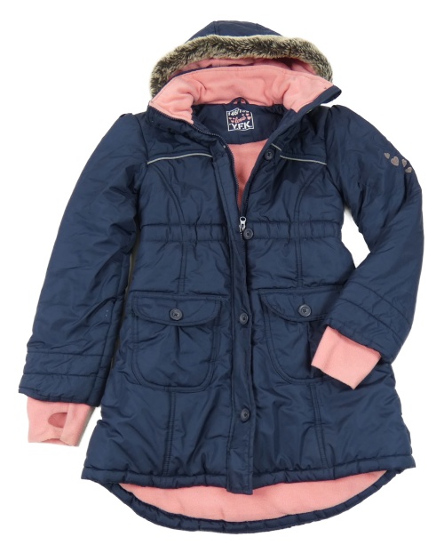 Tmavomodrý šušťákový zimný kabát s kapucňou s kožešinou Y.F.K.
