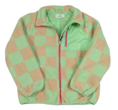 Béžovo-zelenkavá kockovaná huňatá podšitá bunda H&M