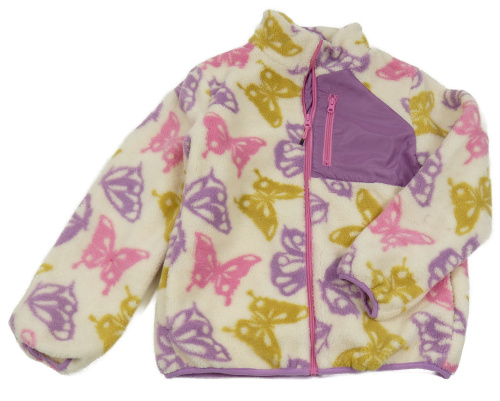 Smetanovo-fialová huňatá podšitá bunda s motýlikmi H&M