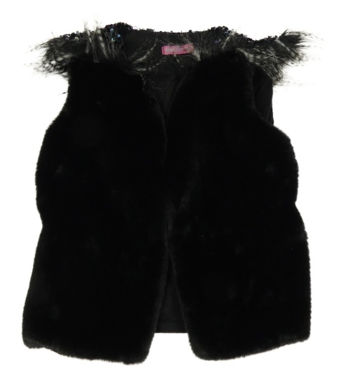 Čierna kožušinová podšitá vesta s flitrami a králičí srstí