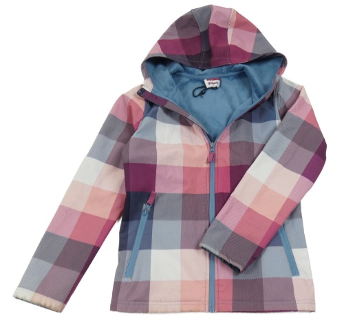 Vínovo-modrošedo-ružová kockovaná softshellová bunda s kapucňou Yigga