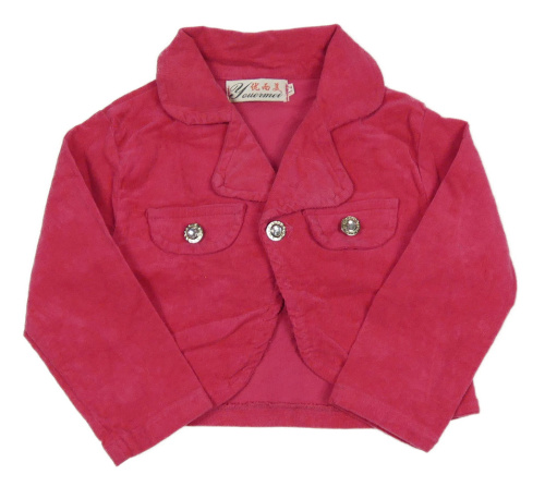 Růžový manšestrový crop kabátek