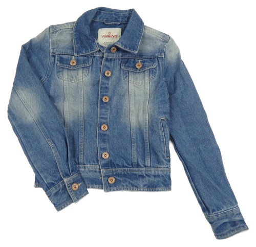 Modrá rifľová crop bunda s logom a palmami a golierikom VINGINO
