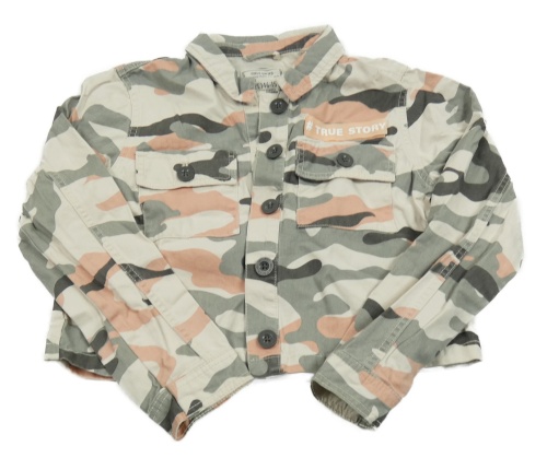 Army rifľová crop bunda s nápisom a golierikom