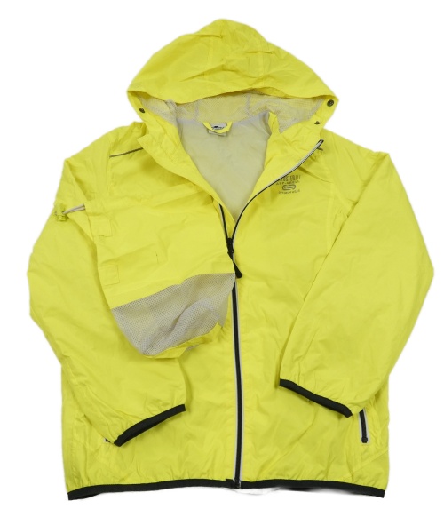 Kriklavoě žltá šušťáková funkčná jarná bunda s nápismi a kapucí + sáček crane