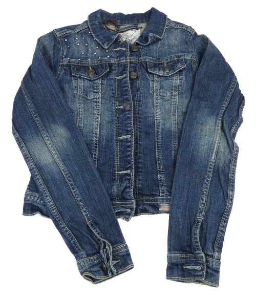 Tmavomodrá riflová crop bunda ošoupaného vzhledu s cvokmi