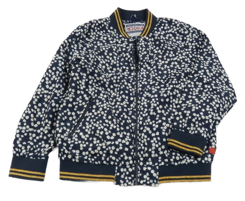 Tmavomodrá kvetinová šušťáková jarná bunda