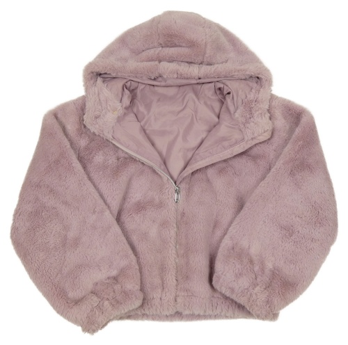 Lila kožušinová podšitá crop bunda s kapucňou Tu