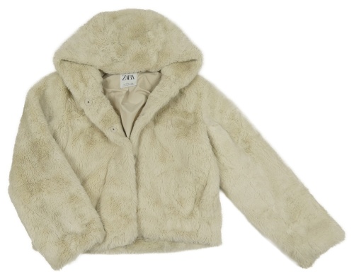 Svetlobéžová kožušinová podšitá crop bunda s kapucňou Zara