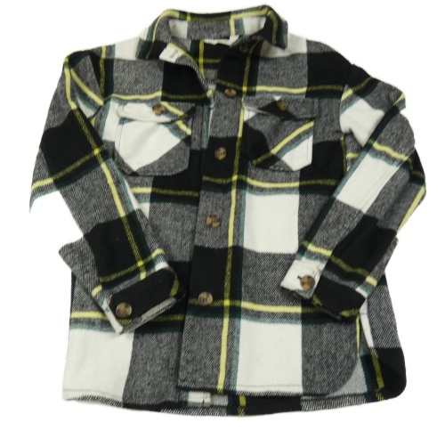 Čierno-bielo-žltá kockovaná vlnená košeľová bunda H&M