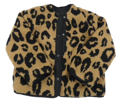 Hnedo-čierna leopardí huňatá obojstranná lehce zateplená bunda