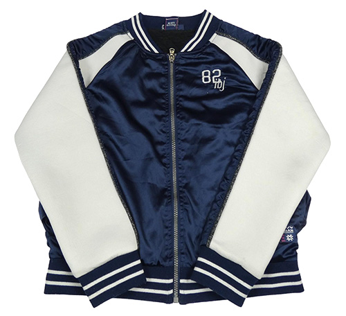 Tmavomodro-svetlosivá saténovo/tepláková jarná bunda s číslom