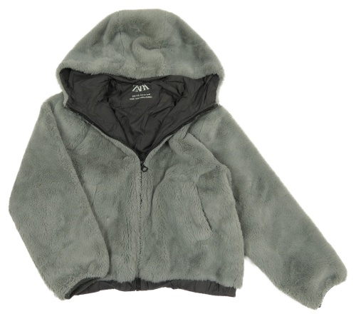 Sivá kožušinová podšitá crop bunda s kapucňou Zara