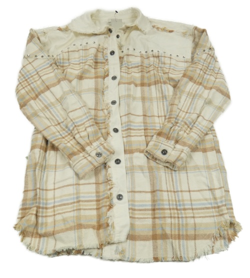 Nové - Smetanovo-béžovo-svetlomodrá kockovaná košeľová bunda River Island