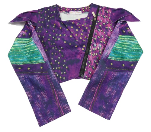 Tmavofialovo-zelený crop krivák s čínskými drakmi a volánikmi
