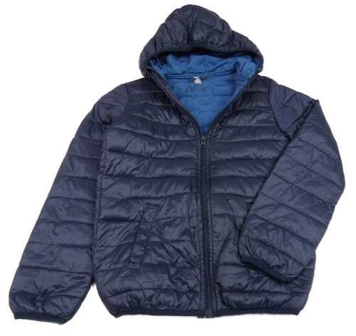 Tmavomodrá šušťáková prešívaná ľahká zateplená bunda s kapucňou