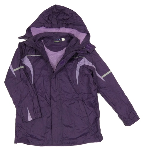 Lilkovo-fialová šušťáková jarná funkčná bunda s ukrývací kapucňou Crivit