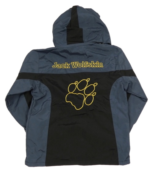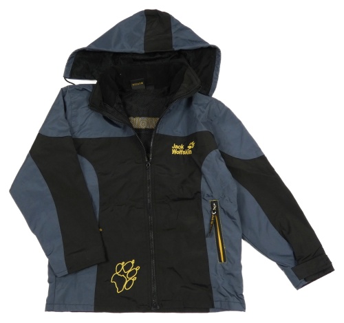 Čierno-sivá šušťáková jarná funkčná bunda s kapucňou Jack Wolfskin
