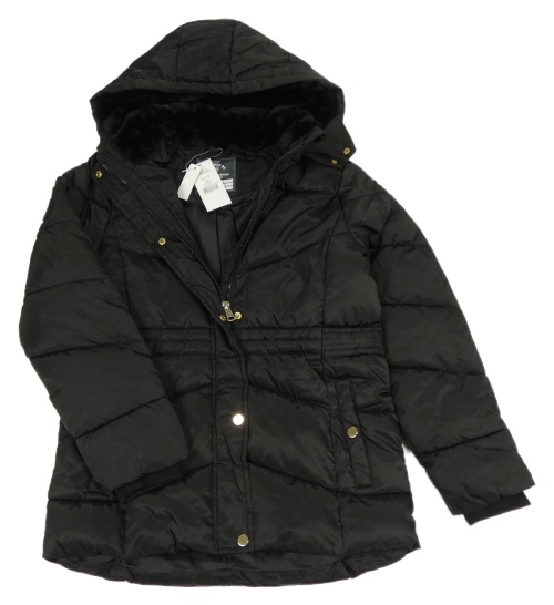 Nové - čierny šušťákový prešívaný zimný kabát s kapucňou George