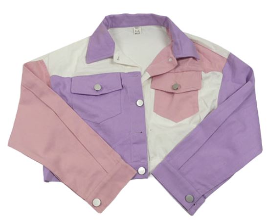 Fialovo-bielo-ružová rifľová crop bunda SHEIN