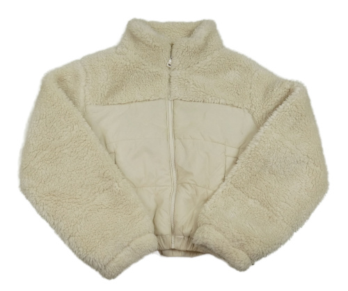 Krémová šusťákovo/huňatá zateplená crop bunda New Look