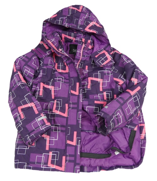 • Tmavofialovo-ružovo-fialová vzorovaná šušťáková zimná bunda s kapucňou Bonprix