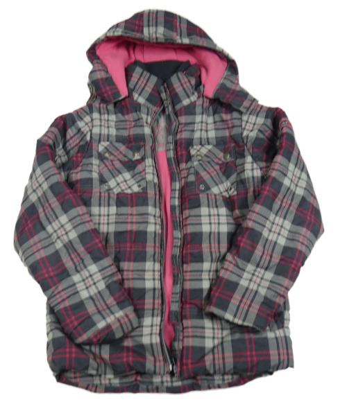Sivo-ružová šušťáková kockovaná zimná bunda s kapucňou Yigga