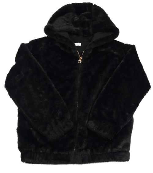 Čierna kožušinová bunda s kapucňou F&F