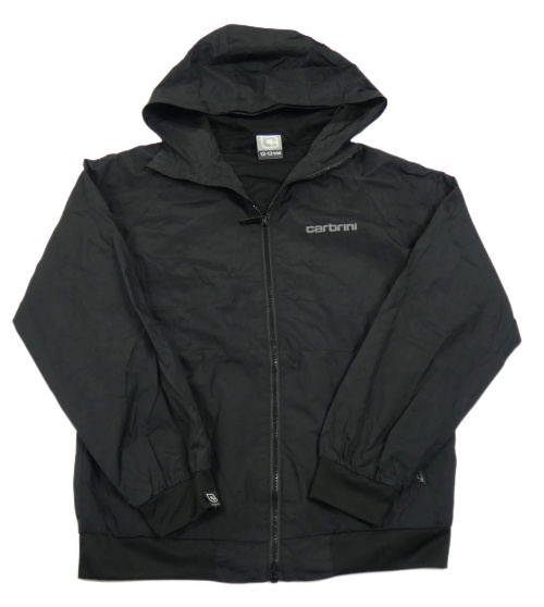 • Černý šusťákový funkční jarní bomber s logom a kapucňou CARBRINI