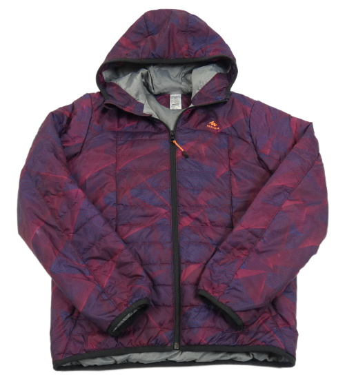 • Ružovo-tmavomodrá vzorovaná funkčná šušťáková zimná bunda s kapucí , Decathlon