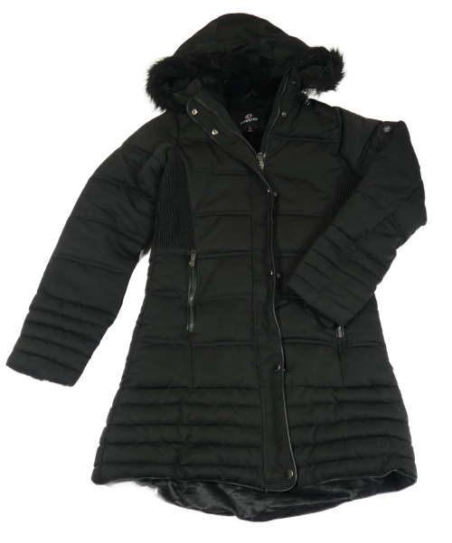 Čierny šušťákový prešívaný zimný kabát s kapucňou Firetrap