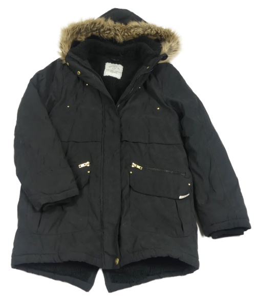 Čierna šušťáková zimná parka s kapucňou s kožešinou George