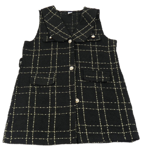 Čierno-zlatá kockovaná dlhá vesta SHEIN