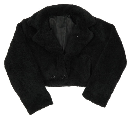 Černý huňatý podšitý crop kabátek Shein