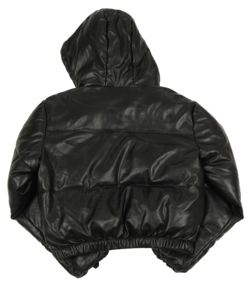 Čierna prešívaná koženková zateplená crop bunda s kapucňou New Look