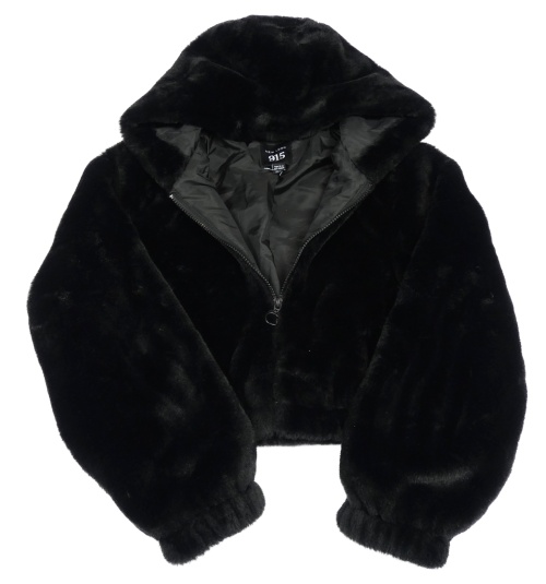 Čierna kožušinová zateplená crop bunda s kapucňou New Look