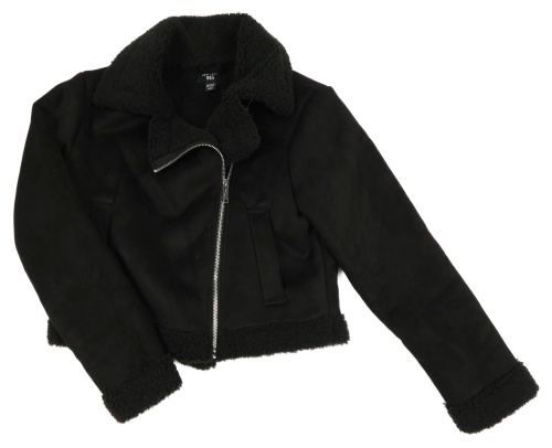 Čierny semišový zateplený crop krivák s huňatým golierikom New Look