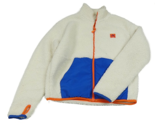 Smetanovo-modrá huňato/šusťáková bunda s nášivkou