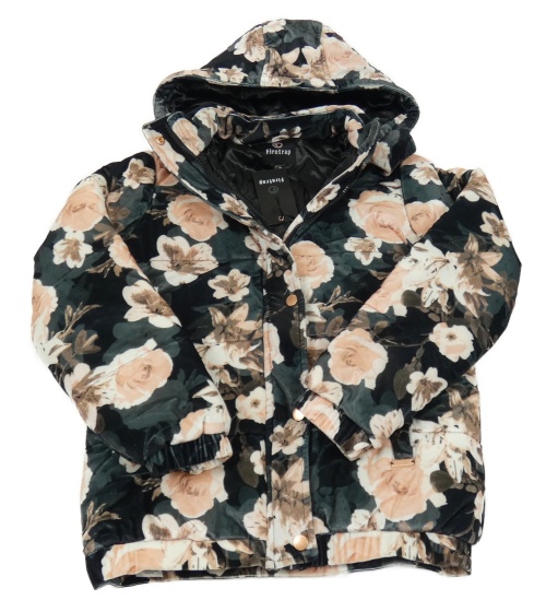• Nové - čierna prešívaná zamatová zateplená bunda s růžemi a kapucňou Firetrap
