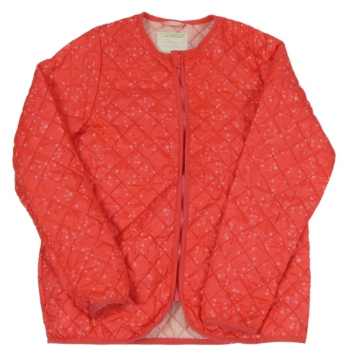 Jahodová kvetovaná prešívaná šušťáková jarná bunda Vertbaudet