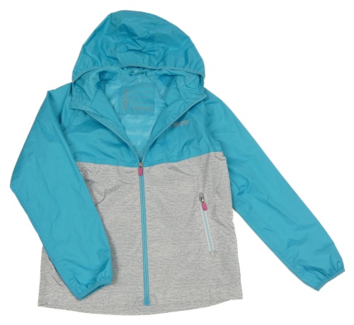 reflexní prvky, azurové lemy u rukávů a kapuce