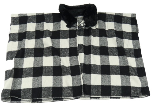 Bielo-čierne kockované vlnené pončo s kožušinovým golierom Nutmeg
