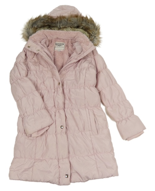 • Svetloružový šušťákový prešívaný zimný kabát s kapucňou s kožešinou M&S
