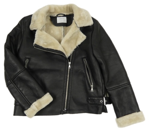 Čierna koženková zateplená bunda s kožešinou Zara