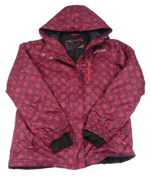 Lilkovo-jahodová vzorovaná šušťáková zimná lyžiarska bunda s nápisom a kapucňou C&A