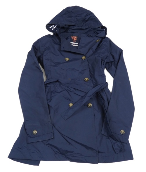 Tmavomodrý šušťákový jarný kabát s opaskom a kapucňou Tchibo