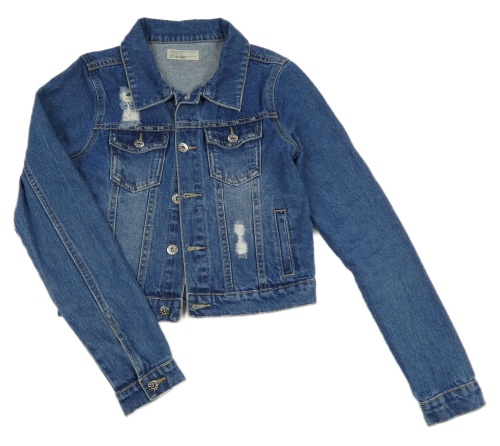 Modrá rifľová crop bunda s vyšúchaním Denim365