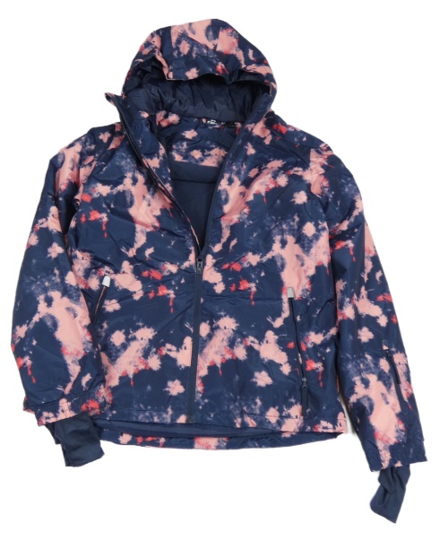 • Tmavomodro-ružová vzorovaná funkčná šušťáková zimná bunda s kapucňou Crivit