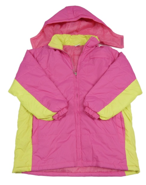 Ružovo-žltá šušťáková zateplená bunda s kapucňou