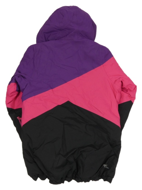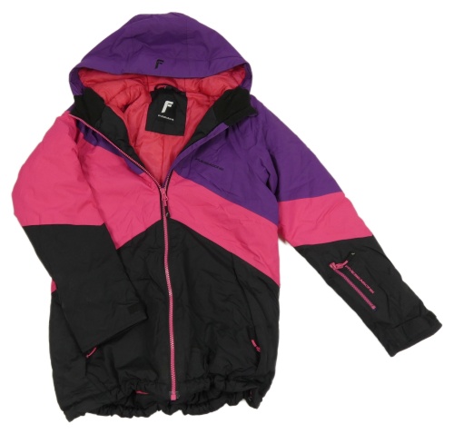 Fialovo-fuchsiovo-čierna šušťáková lyžiarska bunda s kapucňou